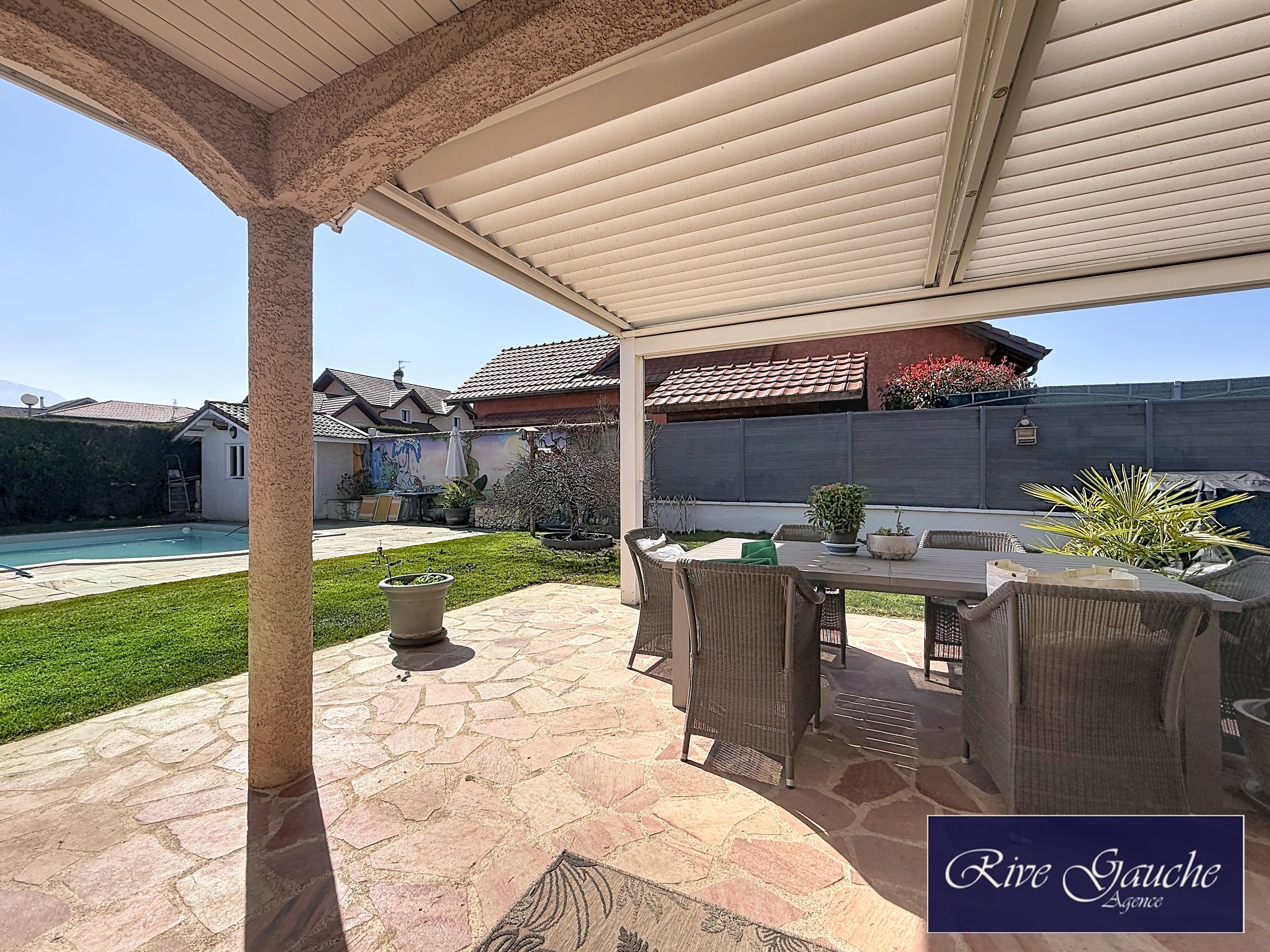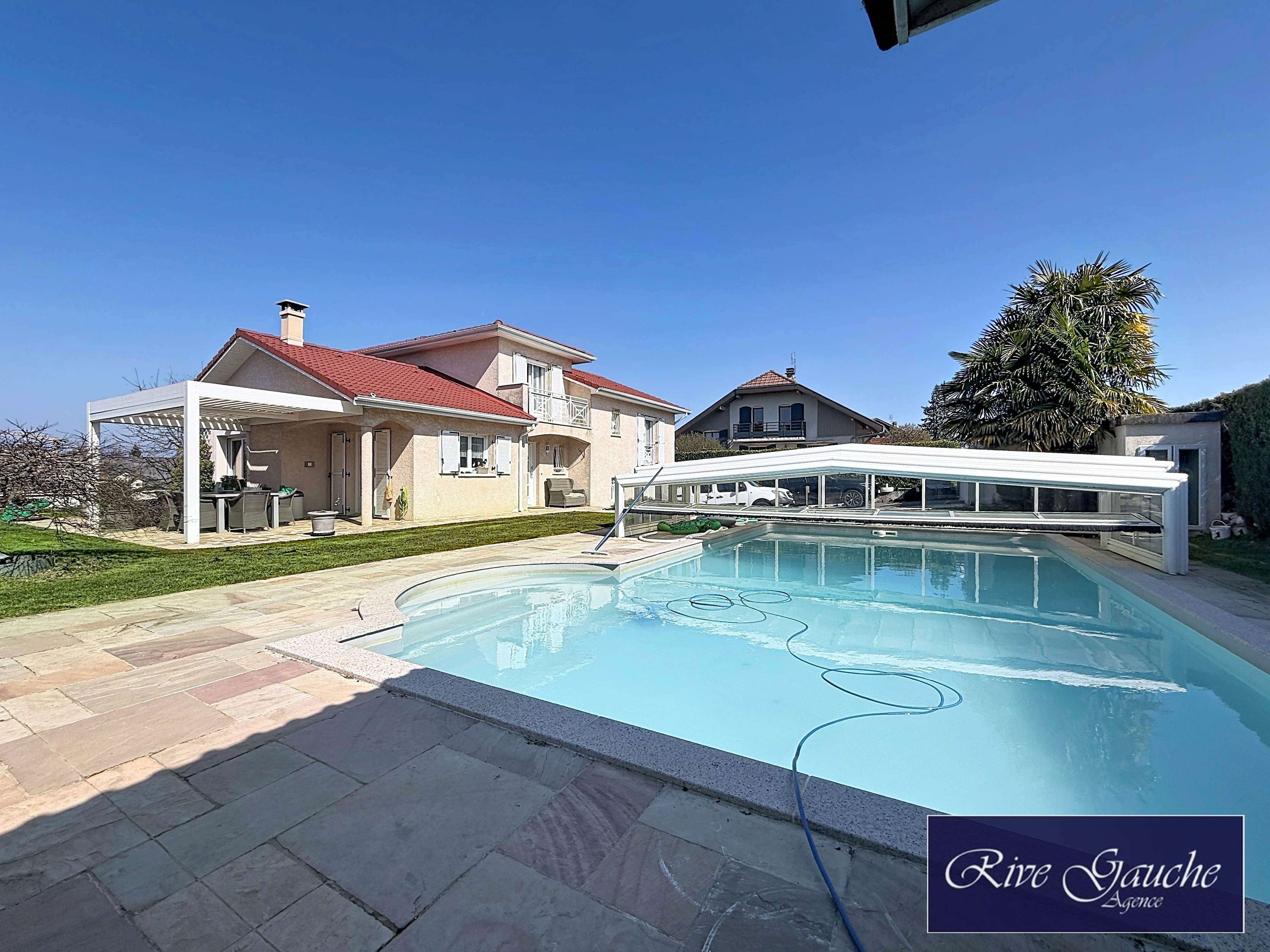Edifiée sur une parcelle de 800m2 entièrement close et arborée avec portail électrique, la propriété dispose d'une grande piscine découvrable, idéale pour partager des moments conviviaux en toute saison.