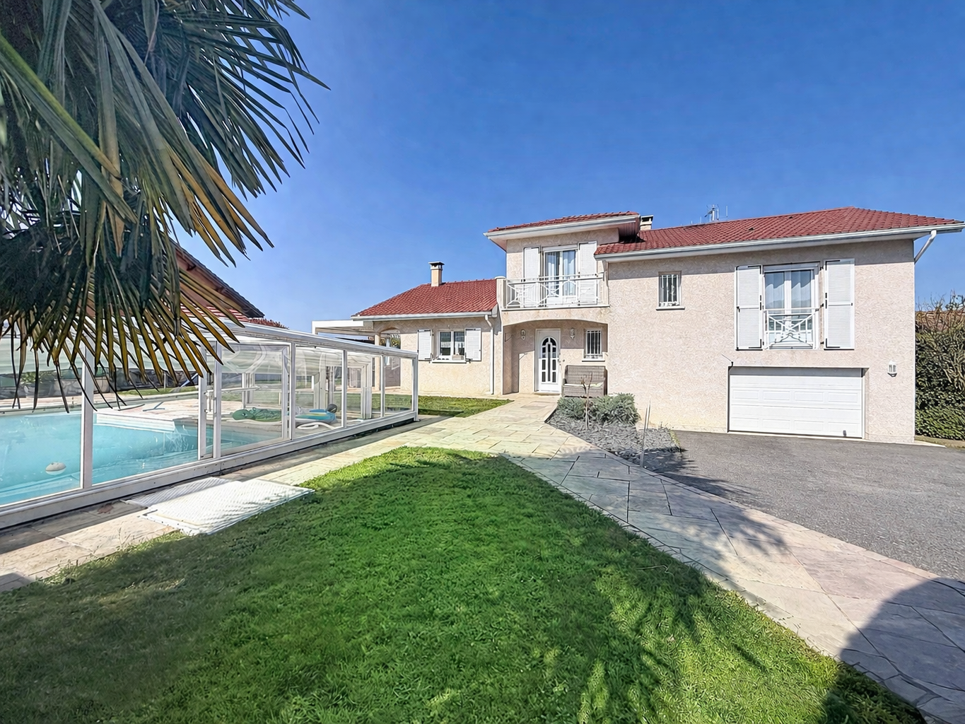 Edifiée sur une parcelle de 800m2 entièrement close et arborée avec portail électrique, la propriété dispose d'une grande piscine découvrable, idéale pour partager des moments conviviaux en toute saison.